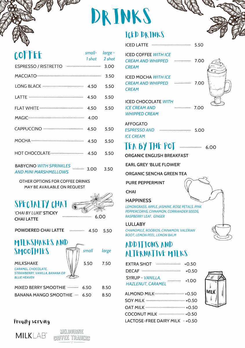 - Iced Drinks: Refresh with a classic Iced Latte or indulge in a rich Iced Mocha.